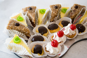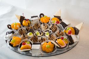 Are you hosting a special occasion? Select our "Sweet Table" catering option which includes: fancy pastries, homemade cakes, fresh fruit, bite size cookies, mini paczki, kruller rosets, champagne glasses with whipped cream and fruit.
